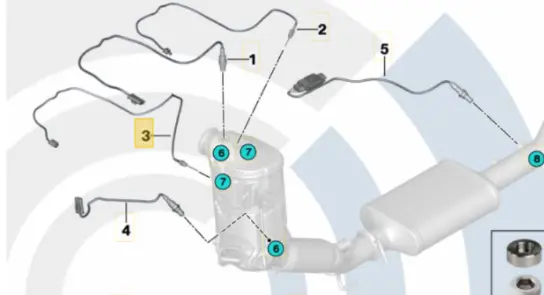Er is zo weinig plek dat ze bij de dealer hiervoor speciaal gereedschap hebben ontwikkeld. Het is echter mogelijk zonder dit speciaal gereedschap. Maar dan moet je wel iets meer demonteren van de hitteschilden en zal je een steeksleutel misschien wat moeten bijslijpen om er aan te kunnen en de sensor los te krijgen. Maar het kan zeker! Op de foto hieronder kan je dus de sensor in kwestie zien. De eerste sensor zit bovenaan de roetfilter en is goed bereikbaar. De derde sensor zit onderaan en is ook perfect bereikbaar.